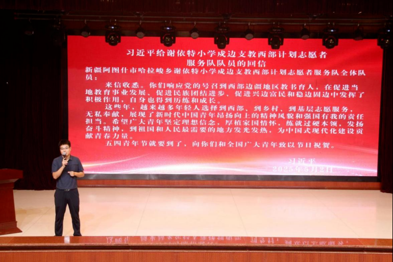 会议回顾《习近平给谢依特小学戍边支教西部计划志愿者服务队队员的回信》,号召全体志愿者发扬好“奉献、友爱、互助、进步”的志愿精神,以饱满热情、十足耐心和强烈责任心投入迎新志愿服务工作,让新生及家长切实感受到学校的关怀与温暖。