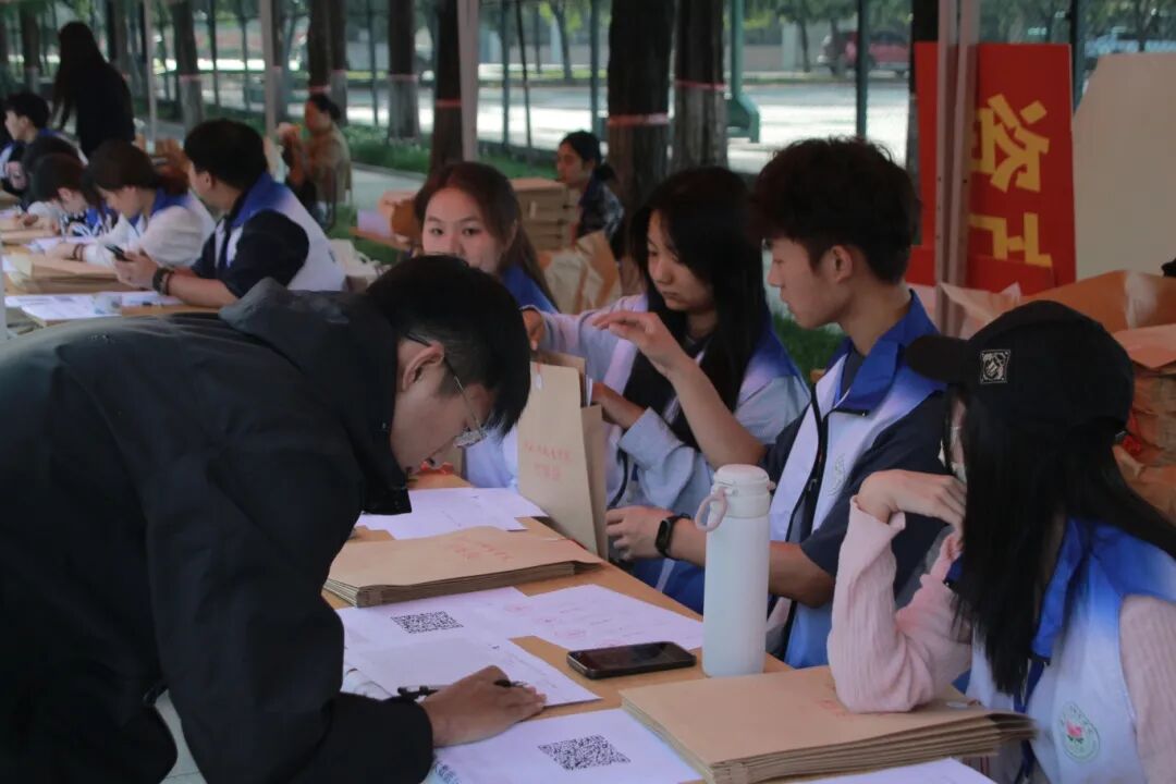 遮阳棚与树荫下,咨询台和报到点人潮涌动却秩序井然。学长学姐们像勤劳的蜜蜂,穿梭其中,耐心帮新生完成报到手续,绘就温暖迎新画卷。