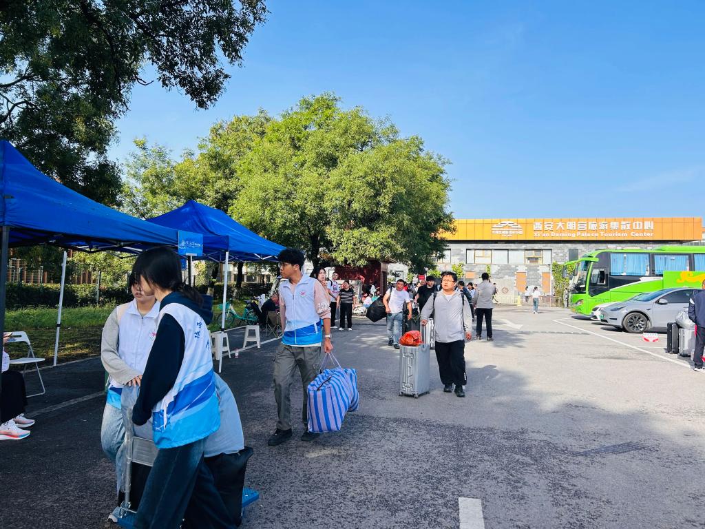 完成报到后,新生在志愿者引导下迈向寝室,开启大学生活。志愿者们如星辰照亮前路、似护盾保驾护航,让新生初入校园便感家的温暖,为大学之旅奏响美妙开篇。