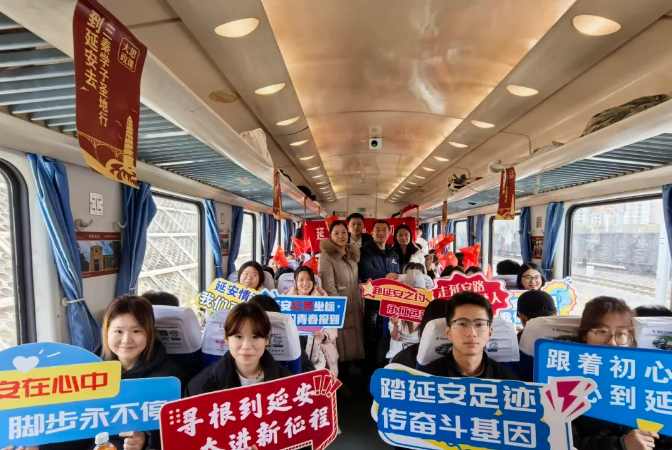 红色专列上,马克思主义学院副教授袁浩、苏战涛分别以《感悟信仰的力量 成就更好的自己》《追寻红色足迹 铸就仁爱匠心》为题开展“行走的思政课”。护理与健康学院学子开展诗词朗诵、腰鼓表演和《我爱你中国》小合唱,管理学院师生开展延安精神主题研讨等。