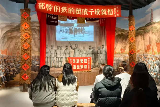 在延安,师生们循着红色足迹走进延安革命纪念馆、杨家岭、枣园等革命旧址。珍贵文物、详实史料让大家沉浸在那段峥嵘岁月中,真切感悟老一辈革命家艰苦奋斗、一心为民的初心。集体观看的《红秀·延安延安》红色剧目,真挚动人的家国情怀令人深受触动;走进枣园革命旧址,国舞社团的同学们伴着《再唱山歌给党听》的激昂旋律,用优美舞姿抒发对党的热爱。
